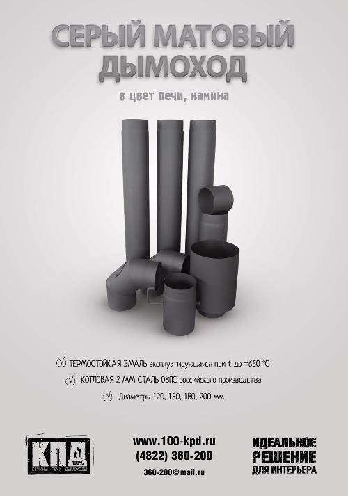 покрашен термостойкой эмалью в черный или серый цвет эксплуатирующийся при t до +800 °С