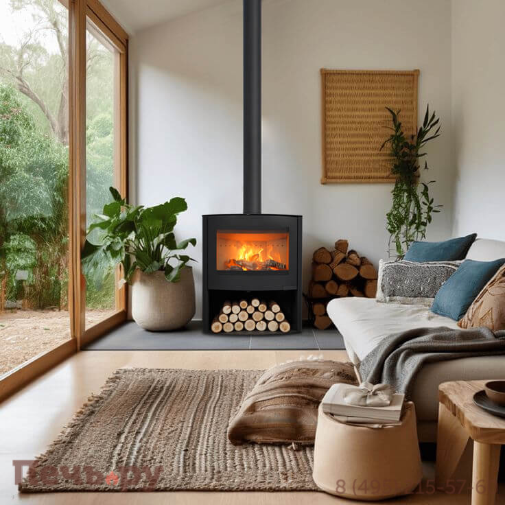 Под печь необходимо предусмотреть негорючее основание. Рекомендуем использовать листы под печь черного цвета.