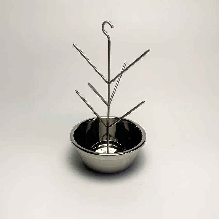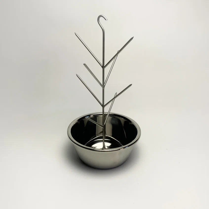 Елочка для тандыра 6 шипов с миской из нержавеющей стали (крючок) D 18/22/26/28см.